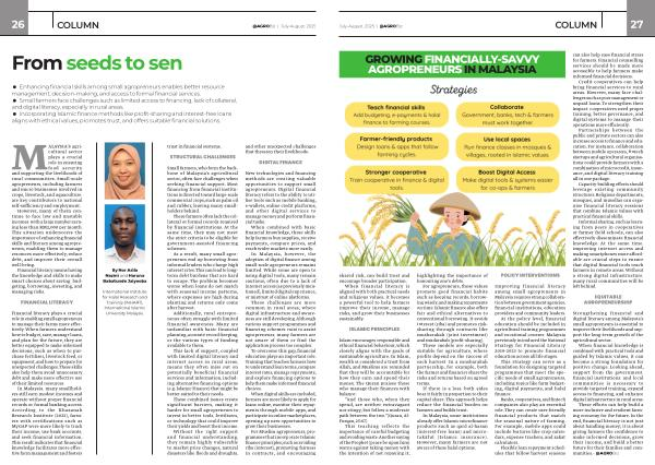 MALAYSIA’ S agricultural sector plays a crucial role in ensuring food security and supporting the livelihoods of rural communities. Small-scale agropreneurs, including farmers and micro businesses involved in crops, livestock, and aquaculture, are key contributors to national self-sufficiency and employment. However, many of them continue to face low and unstable incomes, with a large number earning less than RM2,000 per month. This situation underscores the importance of enhancing financial skills and literacy among agropreneurs, enabling them to manage resources more effectively, reduce debt, and improve their overall well-being.