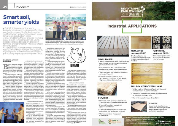 Briar Resources is positioning B. A. S. E. as a long-term solution aligned with Malaysia’ s goal to increase rice self-sufficiency from 56.2 per cent in 2023 to 75 per cent by 2025 and beyond.