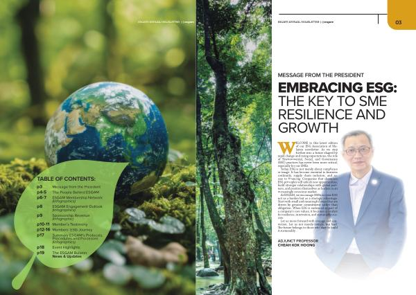 WELCOME to this latest edition of our ESG Association of Malaysia newsletter. As we step further into a future shaped by rapid change and rising expectations, the role of Environmental, Social, and Governance( ESG) practices has never been more critical, especially for our SMEs.