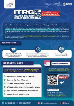 Islamic Tourism Centre is accepting applications for research funding on Islamic Tourism.