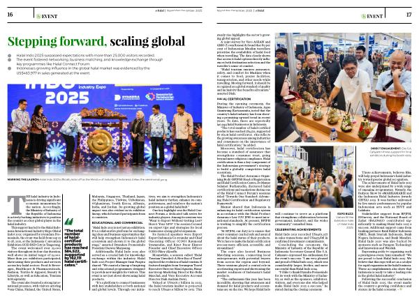 THE halal industry in Indonesia is driving significant economic momentum for the nation. Accordingly, the Ministry of Industry of the Republic of Indonesia is actively backing initiatives to position the country as a key global player in the halal industry. This support has led to the Halal Indonesia International Industry Expo( Halal Indo) 2025. Organised by Dyandara Promosindo, the event was held from Sep 25 to 28, 2025, at the Indonesia Convention Exhibition( ICE) BSD City in Tangerang.