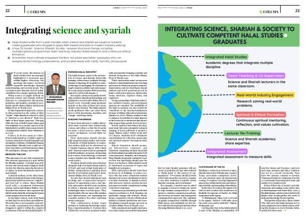 COLUMN 23 that we want. Quality assurance will not create 3S graduates if it just asks students to " define halal " or " list sources of contamination ". Universities should provide rubrics that award the capacity to examine a case that combines scientific detail, shariah reasoning, and social impact.