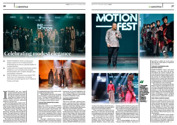 INDONESIA has once again positioned itself at the heart of the global modest fashion movement through the Indonesia International Modest Fashion Festival( IN2MOTIONFEST) 2025, the country’ s largest and most influential platform for modest wear.