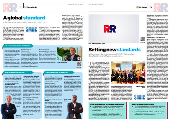 Razip revealed that the recent SMIIC Technical Meeting held in Kuala Lumpur had adopted the Halal Tourism Services: Wellness Spa Classification for publication. The classification covers key elements such as safety and security, adherence to Shariah requirements and best practices, governance, use of halal-certified products, training and professional development, rating and certification, and business development and growth within the spa and wellness sector.