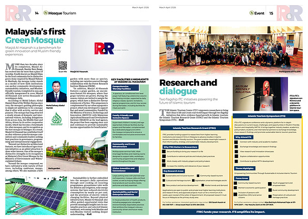 THE Islamic Tourism Centre( ITC) empowers researchers to bring their ideas to life and create real-world impact through two flagship initiatives that drive evidence-based growth in Islamic tourism: the Islamic Tourism Research Grant( ITRG) and the Islamic Tourism Symposium( ITS).- RnR