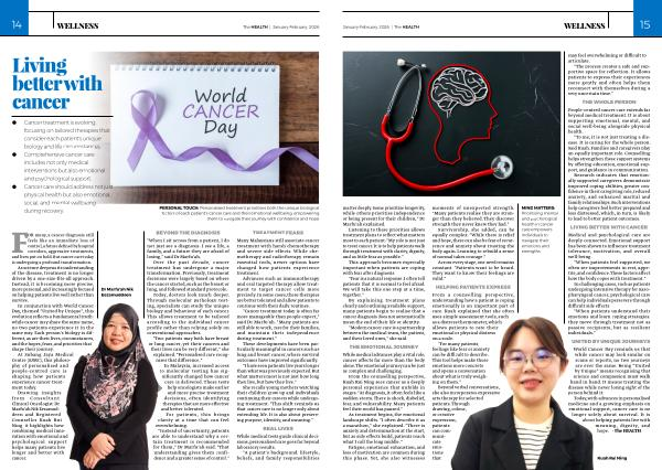 Drawing insights f r o m C o n s u l t a n t Clinical Oncologist Dr Marfu ' ah Nik Eezamuddeen and Registered Counsellor Kuah Rui Ning, it highlights how combining medical innovation with emotional and psychological support helps many patients live longer and better with cancer.