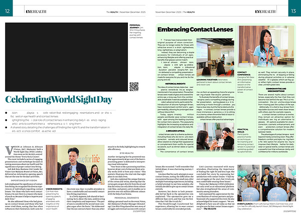 At Vision at Johnson & Johnson( Vision, J & J)( Malaysia)' s World Sight Day celebration, Vision, J & J( Malaysia)’ s Professional Education Specialist Georgina Teh Siew Ann delivered a compelling presentation on contact lenses:“ Contact lenses are made for everyone, for you and me, for the young and old.”