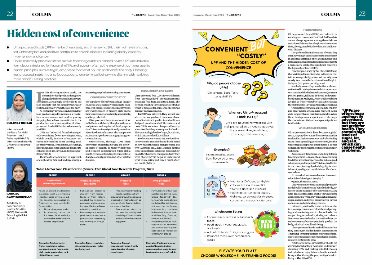 IN this thriving modern world, the demand for food products has grown alongside the increasing human population. Most people need ready-to-eat food products that can simplify their daily routine, especially when they are too busy. As technology advances and demand for food products rapidly increases, a revolution in food science and modern grocery shopping has led to a dramatic rise in the production and consumption of ultraprocessed foods( UPFs). But what exactly are UPFs?