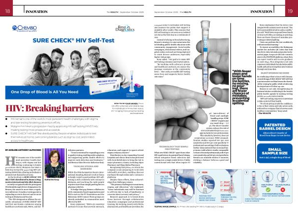 HIV remains one of the world’ s most persistent health challenges, with stigma and late testing continuing to hinder prevention efforts. Malaysia has taken a bold step forward by approving HIV selftesting( HIVST) kits, allowing individuals to privately test themselves at home. At the forefront is SURE CHECK ® HIV SELF-TEST distributed by Reszon Diagnostics International Sdn. Bhd.( Reszon)— recently recognised with the prestigious FDA Breakthrough Device designation. For Reszon, the award is more than a regulatory milestone. It marks a turning point in expanding access to discreet and accurate testing in Malaysia and beyond.